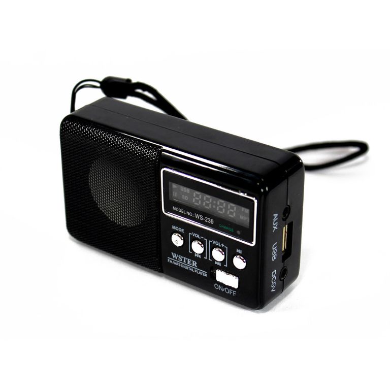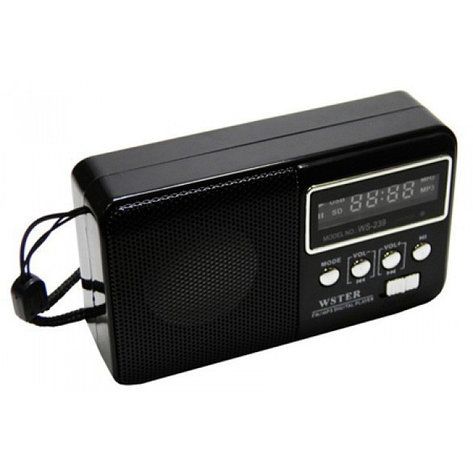 Радиоприемник WSTER WS-239 объединяет в себе функции FM радио и MP3 проигрывателя. Она оснащена USB входом и разъемом для карты памяти, поэтому очень удобна в использовании.