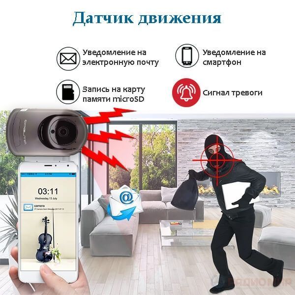 Видеонаблюдение – неотъемлемая часть современных систем безопасности. С развитием нашего общества развивается и преступность. Люди все больше и больше хотят себя обезопасить от нежелательных вторжений и посягательств на их жизнь или имущество. Без камер слежения трудно себе представить надежную систему безопасности. Также камеру можно использовать как видеоняню, благодаря встроенным микрофону и динамику (двусторонняя аудио связь), а также поворотному корпусу (355 градусов) и наклону (90 градусов).