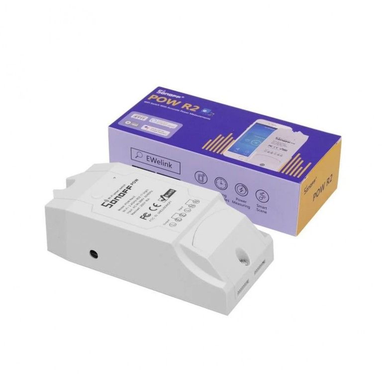 Релейный модуль Wi-Fi, используемый для возможности беспроводного управления электрическими устройствами. Обновлённая версия популярного вай-фай реле Sonoff POW. Теперь можно увидеть онлайн не только мощность, но и напряжение сети и силу тока. Также можно установить стоимость 1кВт/ч и отслеживать денежные расходы за текущий месяц. Можно установить ограничение по мощности(минимальная и максимальная мощность), напряжению(максимальное) или силе тока(максимальная), и реле при достижении заданного порога само отключится.Sonoff Pow R2 - интеллектуальный выключатель Wi-Fi на 15 А, который позволяет удаленно управлять и контролировать ваши приборы и контролировать потребление энергии в вашем доме. Выключатель Wi-Fi работает как монитор мощности, который позволяет отслеживать ток, напряжение и мощность из вашего приложения в реальном времени. Выключатель питания может защитить ваши приборы от перегрузки. Что вам нужно сделать, это установить пороговые значения для тока, напряжения и мощности. Он работает как калькулятор КВт/Ч, который измеряет потребление электроэнергии за определенный период и день. Приложение eWeLink предоставляет данные об использовании электроэнергии за 100 дней, которые вы можете экспортировать в память телефона. Вы можете отслеживать, сколько энергии потребляют ваши приборы, и оценивать свои эксплуатационные расходы. С помощью переключателя контроля мощности Pow R2 вы можете тратить меньше средств на счет за электроэнергию. Таймеры планируют автоматическое включение и выключение ваших приборов в определенное время. Сцена позволяет вашим приборам работать вместе по-новому, например, отключать обогреватель при выключенном освещении. Работает от напряжения 220 вольт. Модель POW R2 предназначена для подключения потребителей более высокой мощностью, до 3500 Вт. Поставляется в пластиковом белом корпусе со съемной крышкой на месте клеммников. Серия умных домов Sonoff основана на ESP8266 WiFi и может подключаться к большинству основных IoT-платформ через собственное приложение eWeLink.