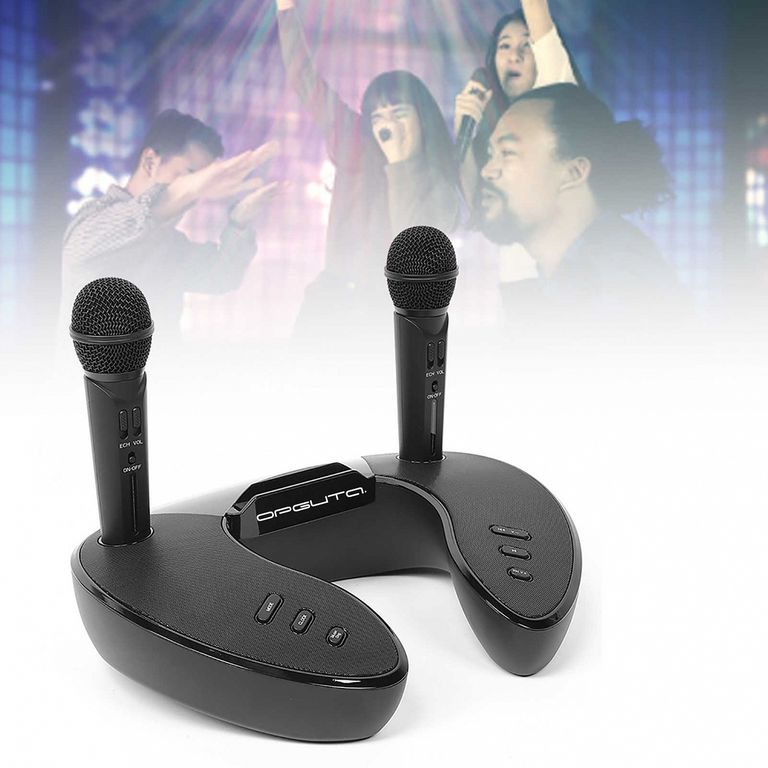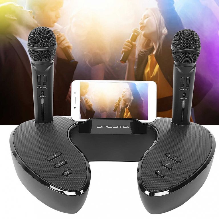Колонка караоке с одним беспроводным микрофоном на аккумуляторе. Сама колонка тоже имеет встроенные аккумулятор. Полностью автономная система караоке.