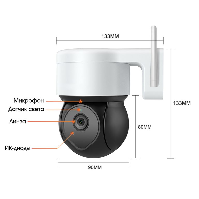 • LED подсветка Опциональная возможность подсвечивать территорию при обнаружении перемещения объекта.