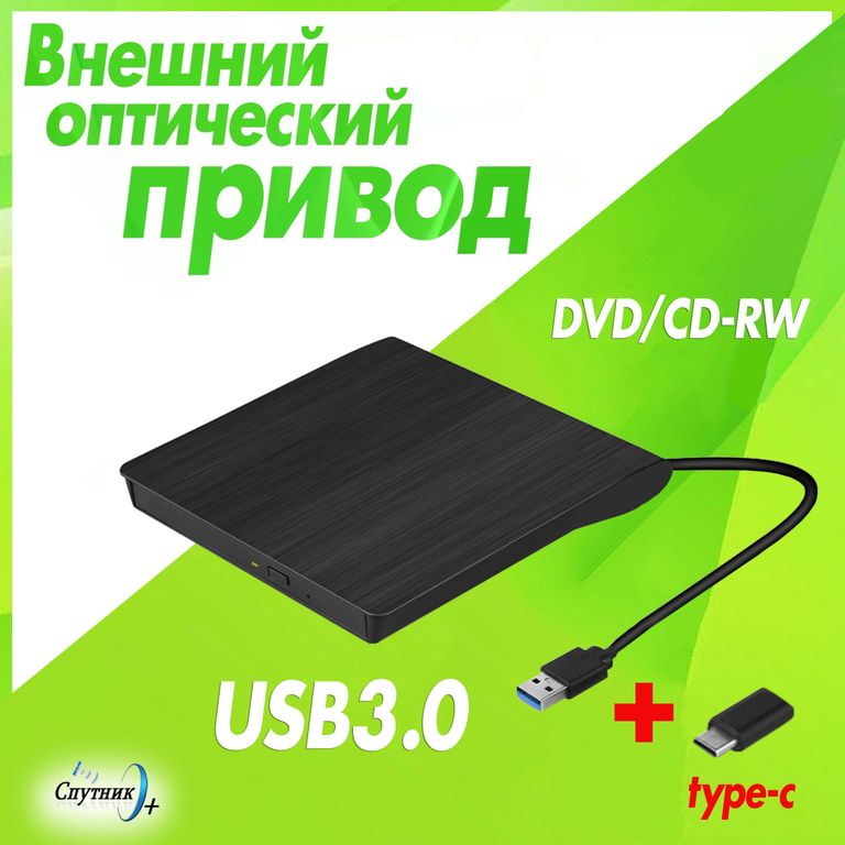 Эффективным и доступным по стоимости решением станет внешний дисковод DVD/CD плеер, если сломался проигрыватель, но нужно регулярно считывать или записывать информацию с дисков. Легко подключается к любому современному компьютеру или ноутбуку, имеющему USB интерфейс, работает быстро, бесшумно и занимает немного места. Универсальный оптический привод, который сможет считывать информацию с двд дисков. Дисковод для компьютера не требует отдельного питания, работает от USB / Type-C 5В.