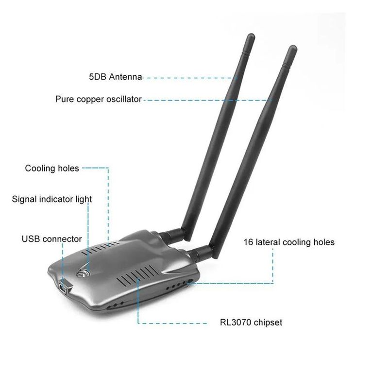 4. Адаптеры высокой мощности BT-N9100 используют чипсет RTL8192FU и усилитель высокой мощности для повышения производительности продукта. Настройка внешней всенаправленной антенны позволяет адаптеру принимать более сильный сигнал. В случае установки экрана он полностью избегает сильного излучения от мощного адаптера, так как это значительно повышает стабильность. Совместимость со стандартами беспроводной связи IEEE 802.11n, 802.11b/g/n, диапазон частот 2,4 ГГц.