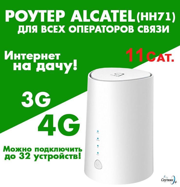 Cмартстанция Alcatel HH71 производство компании Nokia - это высокотехнологичное устройствосаt.7 с оптимизированным программным обеспечением до категории cat.11 (в обычных магазинах подобные роутеры другого исполнения только саt.7)Для подключения устройства не требуется установщик! Роутер имеет первоначальные настройки и готов к использованию. Достаточно вставить сим-карту с активным тарифом, включить питание, и подобрать месторасположение с наилучшим качеством сигнала. Предустановленный пароль для подключения к Wi-Fi находиться на самом корпусе. В случае необходимости полностью русифицированное меню устройства поможет сделать настройки под себя.