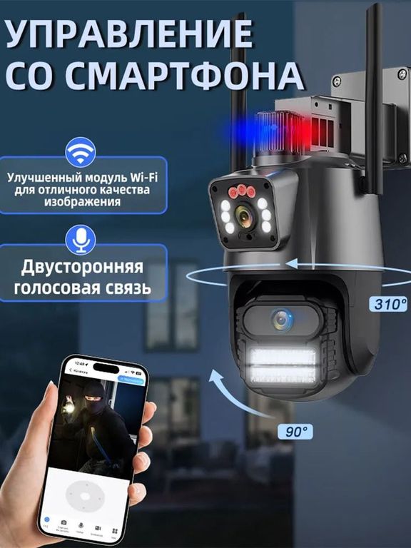 Представляем вам уличную камеру видеонаблюдения WiFi-IP двойного обзора 360 Smart Camera с приложением V380 PRO. Эта инновационная камера предназначена для обеспечения высокой степени безопасности вашего дома или бизнеса. С её помощью вы сможете в любой момент следить за своей территорией, даже находясь вдали от нее.