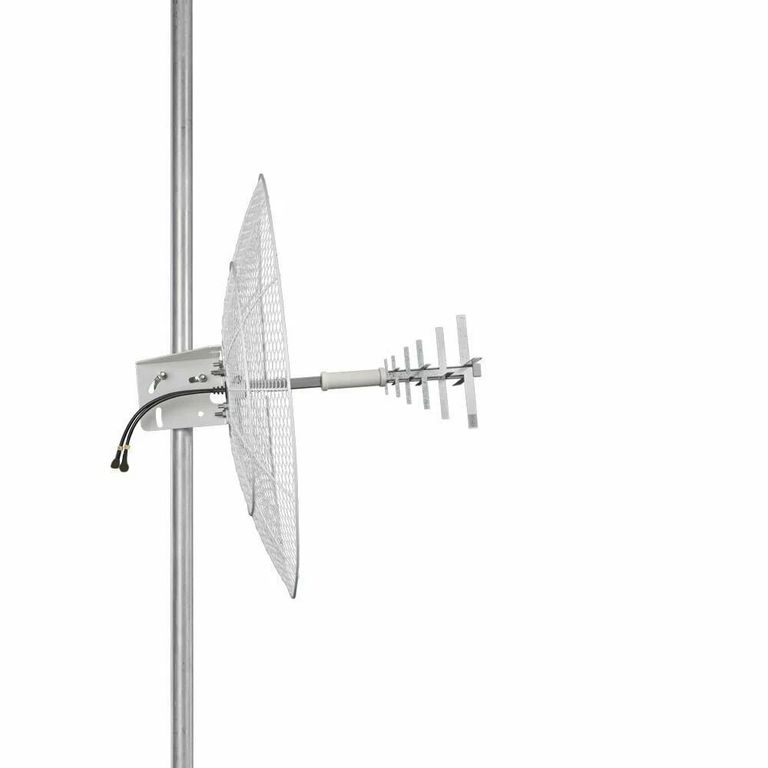 KROKS KNA21-700/2700 - это параболическая широкополосная направленная MIMO антенна с коэффициентом усиления 21 дБи. Антенна поддерживает технологию LTE и предназначена для работы с 3G /4G / LTE модемами cat.4, cat.6, cat.9, cat.12, cat.13 с возможностью агрегации частот, роутерами и другим оборудованием, работающим в частотном диапазоне 700/2700 МГц.