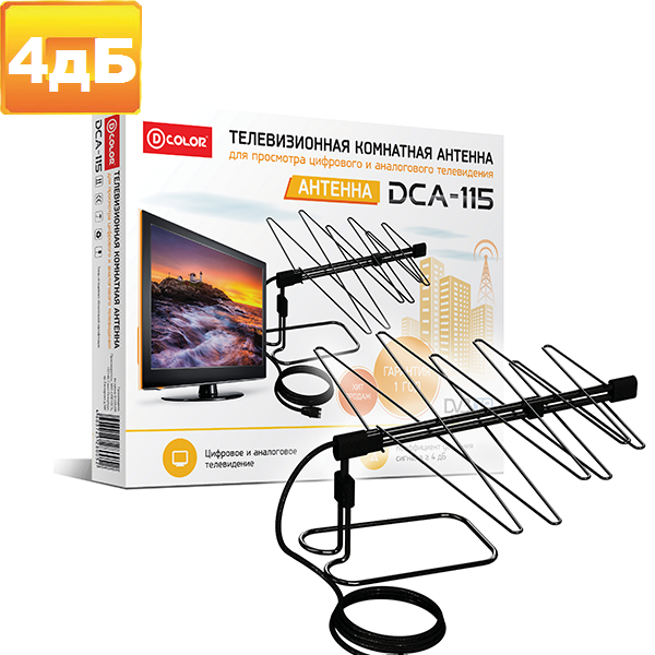 ТВ-Антенна D-color DCA-115 – это комнатная антенна, которая может быть использована для приема как обычных аналоговых, так и цифровых телеканалов.