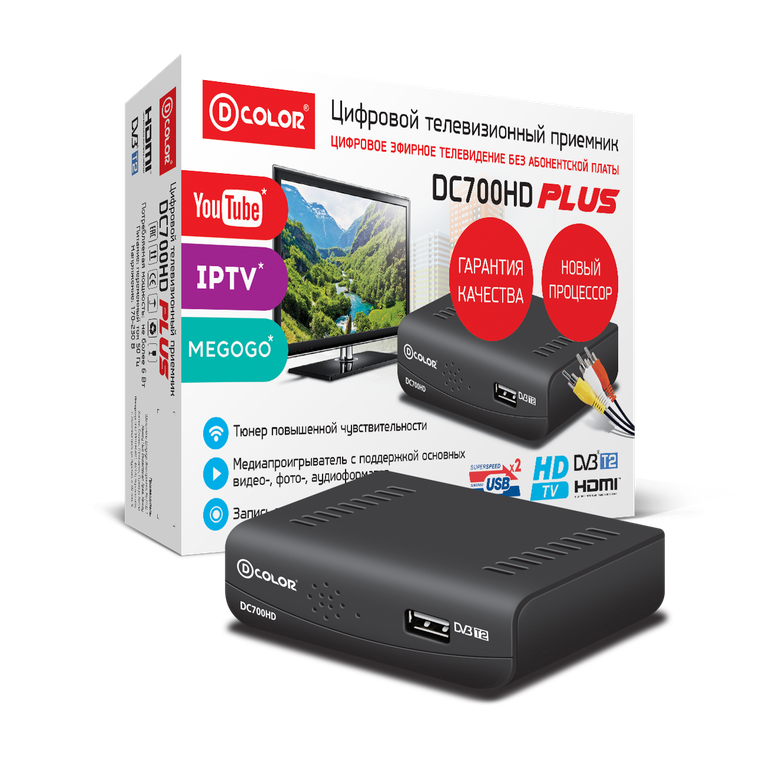 Цифровая эфирная приставка для 20 Бесплатных каналов, вещающихся по всей территории Российской Федерации.