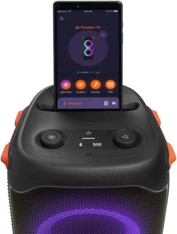 Вам не обойтись без портативной колонки JBL Partybox 110, если вы любите зажигательные вечеринки, уютные домашние киносеансы или просто не представляете своей жизни без музыки! Это устройство станет отличным дополнением любого вечера в большой компании и поможет создать нужную атмосферу, когда вы наедине с собой. Partybox 110 — колонка на все случаи жизни! Преимущества портативной колонки JBL Partybox 110 Портативная колонка JBL Partybox 110 — это настоящая аудиосистема профессионального уровня, объединившая в себе несколько устройств. С ней вы можете слушать музыку, петь в караоке, играть на гитаре, устроить домашний кинотеатр, включить светодиодную подсветку и веселиться сколько угодно. Вы будете приятно впечатлены её многофункциональностью и великолепным уровнем звучания. JBL Partybox 110 может работать как от сети, так и за счёт встроенного аккумулятора. Колонка полностью оправдывает свою портативность: она способна функционировать до 12 часов без дополнительной подзарядки, не изменяя громкость звука и его качество. Колонка весит приблизительно 11 кг, корпус выполнен из прочного матового пластика, предотвращающего появление царапин и отпечатков пальцев. Технология защиты от влаги сохранит ваше устройство от воздействия воды — смело ставьте её около бассейна или реки. С наступлением темноты вам не придётся включать дополнительное освещение — встроенная подсветка любую вечеринку сделает ещё веселее. Выберите один из четырёх режимов подсветки, пульсирующей в ритме музыки, и танцуйте! Главное достоинство JBL Partybox 110 — невероятное, идеально сбалансированное качество звучания. Звуки разных частот слышны одинаково хорошо при любом уровне громкости. Вы никогда не слышали настолько чистых и глубоких звуков. А подключив два микрофона и одну гитару, вы легко устроите вечер караоке! Портативная колонка автоматически обработает ваш голос, и вы покорите всех своим вокалом. Как использовать портативную колонку JBL Partybox 110. Чтобы начать использование JBL Partybox 110, подсоедините её блок к сети с помощью электрического шнура. Хотите использовать колонку как беспроводную? Дождитесь окончания заряда аккумулятора. Подключите устройство, с которого будет транслироваться музыка, через USB, Bluetooth или AUX-кабель. Установите необходимые настройки для лучшего звучания, выберите схему и цвет подсветки и громкость. При необходимости подключите микрофоны и гитару через специальные разъёмы, находящиеся на задней поверхности портативной колонки. Готово! Теперь ничто не помешает вам провести вечер так, как вы хотите! Портативная колонка JBL Partybox 110 — идеальное приобретение и бесценный подарок для всех ценителей качественного и чистого звука! Берите её в любые поездки независимо от их продолжительности и погодных условий. Устройте масштабную вечеринку в любом месте буквально за пару минут. Настройте колонку по своему желанию, выбрав подходящие параметры для каждого жанра музыки. Эта аудиосистема одинаково хорошо подойдёт для прослушивания музыки, караоке, игры на гитаре или просмотра фильмов. С портативной колонкой JBL Partybox 110 вы в полной мере ощутите силу и красоту качественного звучания!