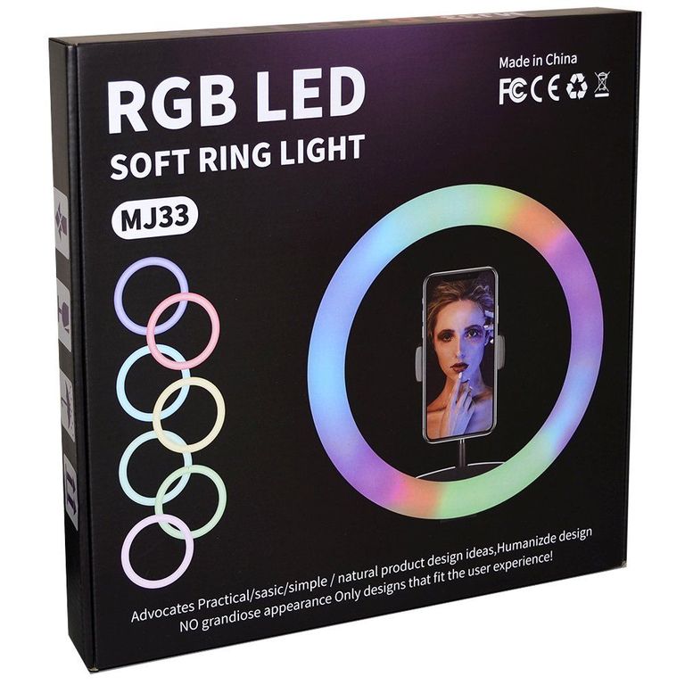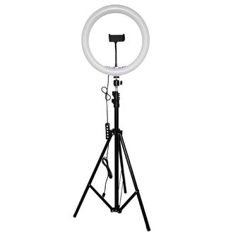 Комплектация: кольцевая лампа, гибкий держатель для телефона, адаптер (поворот на 360), штатив