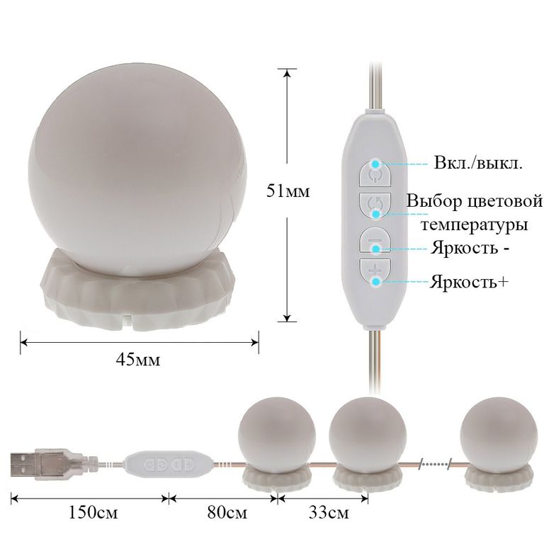 Светодиодные лампы крепятся на двухсторонний скотч. Дополнительный скотч в комплекте.