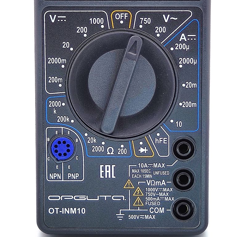 Мультиметр предназначен для измерения напряжения, тока, сопротивления, емкости, проверки диодов, транзисторов, звуковой прозвонки.