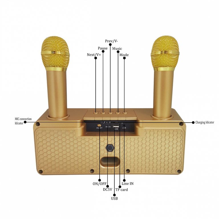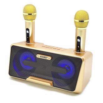 Караоке системы в золотом цвете с мощным звуком - отличный подарок для любителей пения и не только. Так же это находка для тех, кто ведет различные мероприятия в небольшой аудитории для звукового усиления.