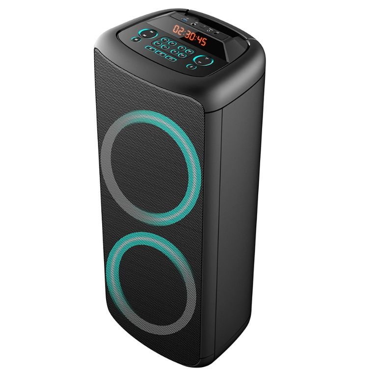 Мощный звук двух больших широкополосных динамиков на 60 ВТ общей пиковой мощностью 600 ВТ и световые динамические эффекты LЕD подсветки создадут атмосферу праздника и веселья.