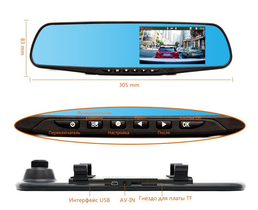 Видеорегистратор зеркало TDS CAR10 с камерой заднего вида обладает следующими преимуществами: