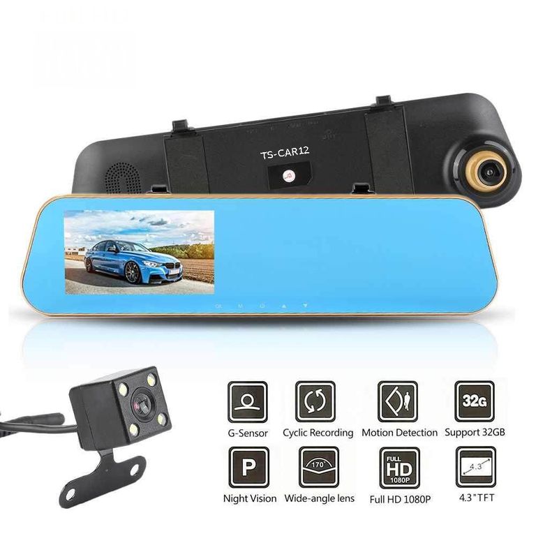 TDS TS-CAR12(69) - это автомобильный видеорегистратор-зеркало, сочетающий в себе функциональность и удобство использования. Устройство оснащено двумя камерами: одна расположена на зеркале, а вторая - на дополнительной камере длиной 3 метра. Это позволяет записывать все, что происходит вокруг автомобиля, включая заднюю часть.