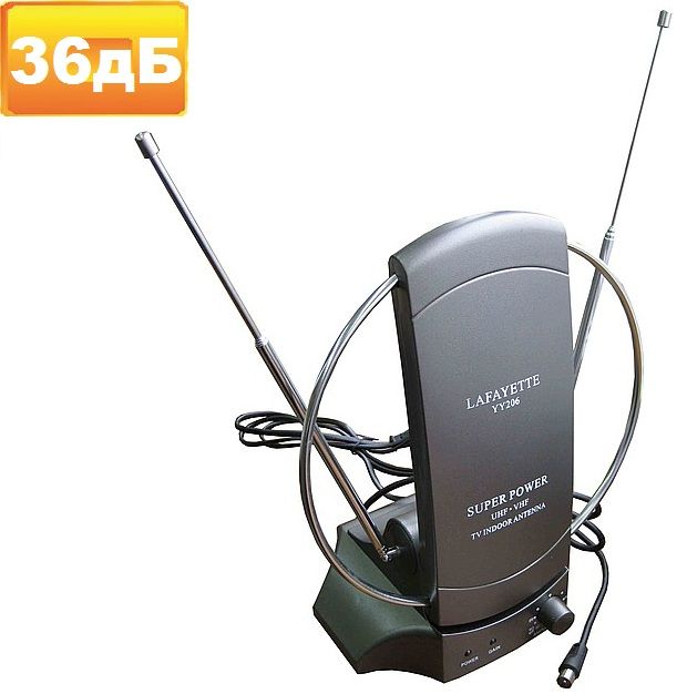 Эфирная, комнатная антенна LAFAYETTE с усилителем для цифрового, эфирного телевидения высокой четкости DVB-T2 имеет самую удобную конструкцию, хороший прием сигнала, усилитель с регулятором мощности и транзитный вход с внешней антенны для ее усиления.